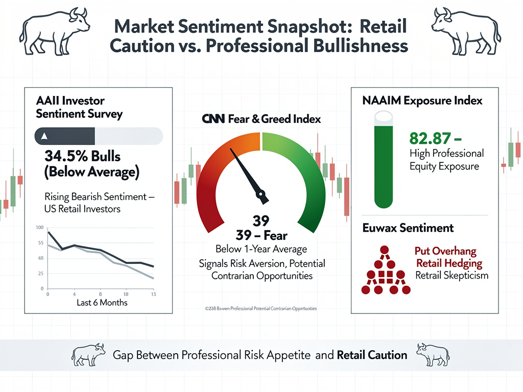 - Profis vs. Privatanleger: NAAIM-Exposure ist mit 82,87 klar bullisch, während Euwax-Daten Puts-Überhang zeigen – ein Spalt zwischen Profi-Risikofreude und Retail-Skepsis mit Kontraindikator-Potenzial.